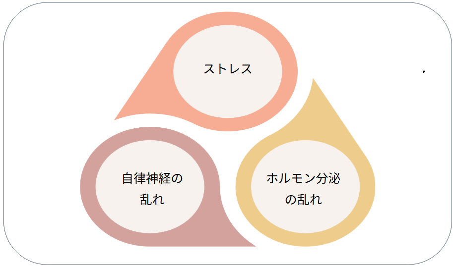 ストレスがある➡自律神経が乱れる➡性ホルモンが乱れる➡不安や不調が増える➡ストレスが増える