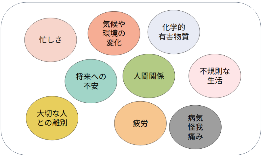 不定愁訴を引き起こすと考えられている要因例