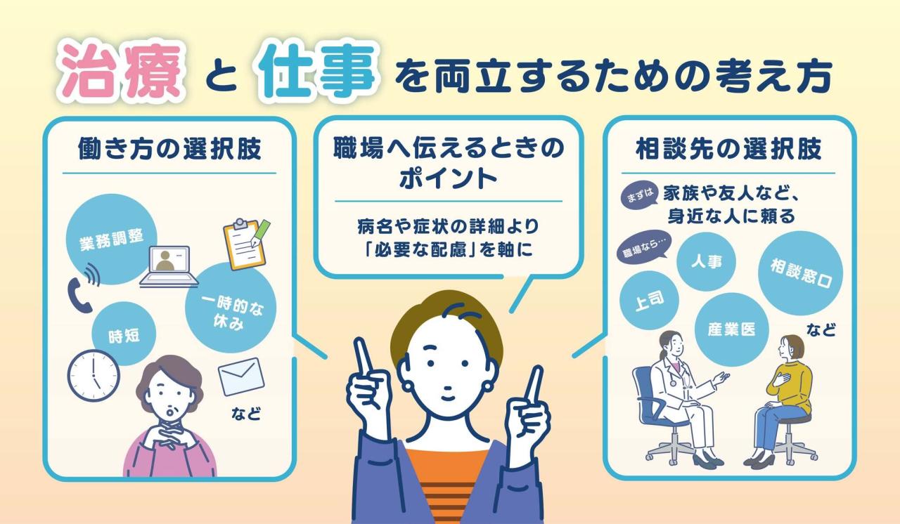 治療方針を決める段階では、仕事の続け方や休職・時短勤務など、現実的な選択を考える必要が出てきます。